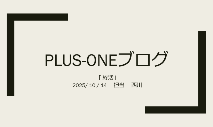 ㈱PLUS-ONEサービスの西川です。 今回のテーマは終活です。 終活=人生の締め作業という考えの方も多いと思います。 ですが考え方によっては、終活...