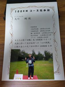 1位の人は13時間04分で完歩したようです。時速7.7キロは私にとってランニングです。100キロウォークは順位やタイムを競うものではありませんが、モチベーションを維持するものとしては大事です。私も20時間を切ることを目標に、日々トレーニングしたいと思います。また、来年は歩いたことのないコースを歩いてみたいので、今からどこを歩こうか楽しみながら検索しています。