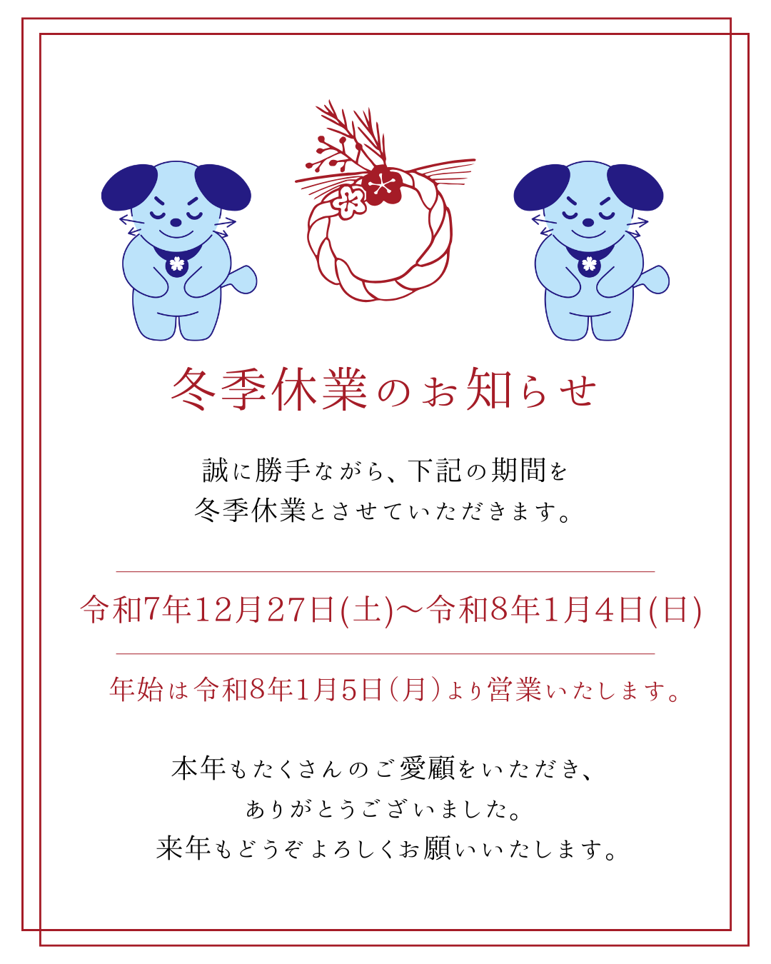※ 令和8年1月5日(月)より通常営業をいたします。